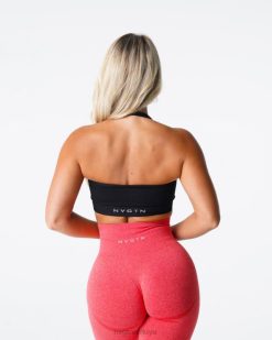 NVGTN Fitness kadınlar sınırsız nervürlü dikişsiz yular sutyen siyah 2T4TB114